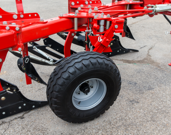 它可以在限深和运输两种功能之间方便转换,工作深度可以在无须提升轮子的情况下快捷通过锁定进行改变。在运输时被固定在中央位置。在运用限深运输轮时犁梁处于运输位置的中心。改变销钉位置的操作简单快捷,锁定销自动滑落到位。
